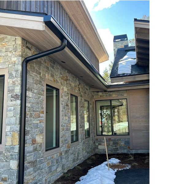 A 4" round downspout system effectively handles drainage for approximately 2000 square feet of roof area, making it a reliable choice for managing water runoff on large roofs. This system not only ensures efficient water flow but also enhances the curb appeal of your home with its classic, aesthetically pleasing design. Additionally, 4" round downspouts can be paired with 6" K-style gutters or 6" box gutters to offer both functional benefits and an upgraded look, providing a stylish alternative while maintaining effective water management. The combination of functionality and visual appeal makes half-round downspouts a versatile option for homeowners seeking to improve both performance and aesthetics.